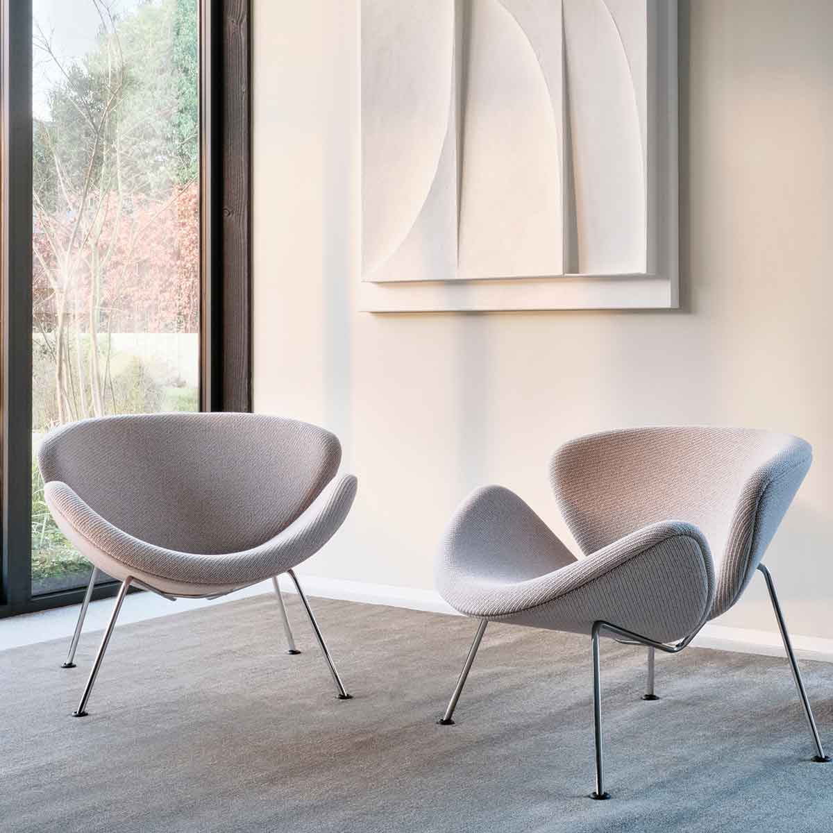 Ter ere van het 65-jarig jubileum van de samenwerking tussen Artifort en de wereldberoemde ontwerper Pierre Paulin, is er een bijzondere actie op één van de meest iconische fauteuils uit de collectie: de Orange Slice. Tot en met 31 december 2025 ontvang je 10% korting op deze designklassieker bij aanschaf in een standaard stof uit de Artifort-collectie. De Orange Slice werd in 1960 ontworpen door Pierre Paulin en is uitgegroeid tot een van de meest herkenbare fauteuils binnen het moderne meubeldesign. Het ontwerp bestaat uit twee sierlijk gebogen, identieke schelpen die samen een open, uitnodigend silhouet vormen – speels, ruimtelijk en comfortabel tegelijk.