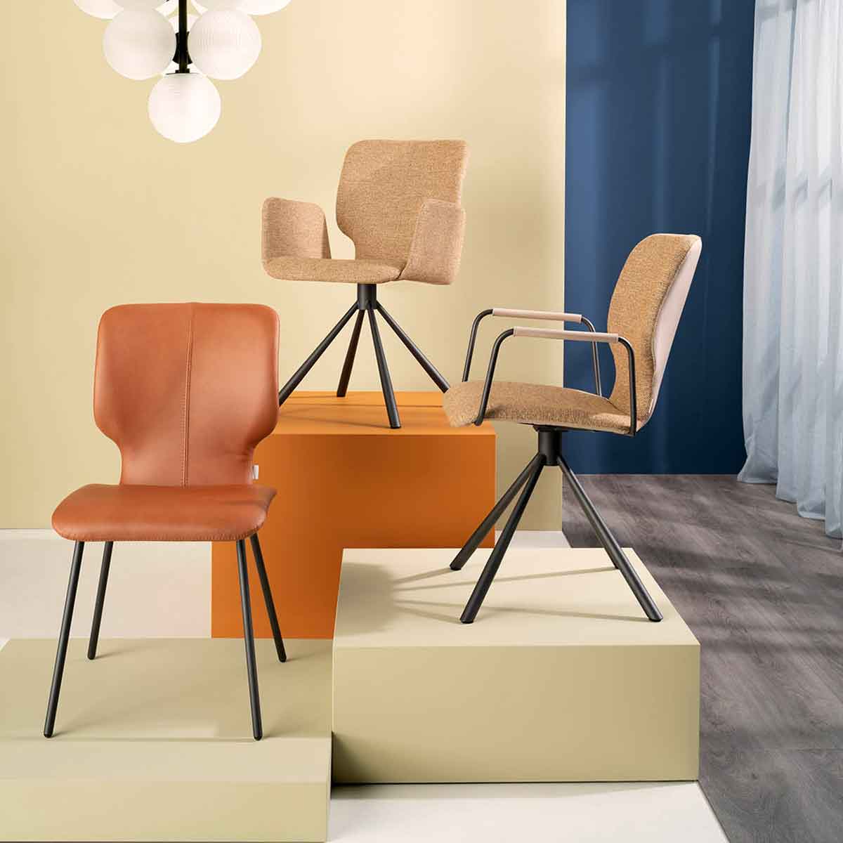 • Je ontvangt korting op de eetkamerstoel Mister T voor alle stoffen A. Er zijn verschillende types en armopties mogelijk