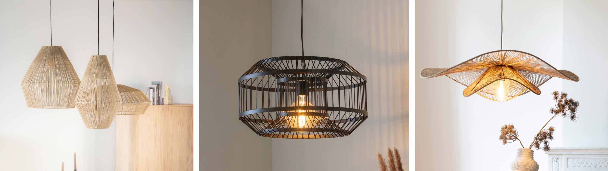 Naast materiaal kan je spelen met vormen. Wil je graag de rechte lijnen in je interieur doorbreken? Kies dan voor een ronde of ovale hanglamp. Je kunt ook variëren met vorm. Hang hiervoor lampen van verschillende vormen bij elkaar en speel met de hoogte. Tevens kan je gaan voor een prominente hanglamp als eyecatcher. Kies hiervoor een grote lamp met een mooi motief of sprekende kleur.