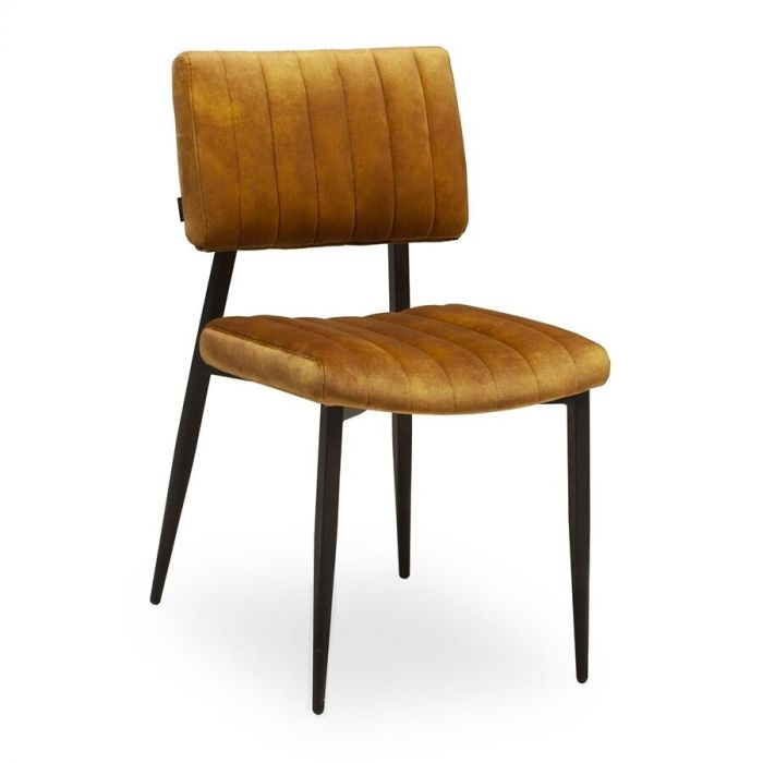 De stof vangt het licht op een subtiele manier, waardoor de stoel een prachtige glans krijgt die elke eetkamer verrijkt. Zowel de rug als de zitting zijn voorzien van verfijnde verticale stiksels, die niet alleen een visueel interessant element toevoegen, maar ook zorgen voor een geraffineerd gevoel van textuur en diepte. De slanke metalen poten creëren een eigentijds en luchtig karakter, waardoor de stoel een moderne uitstraling krijgt die perfect past bij diverse interieurstijlen. Ivan is verkrijgbaar in de kleuren Gold, Antraciet en Moss welke ook perfect te combineren zijn. Daarmee creëer je een kleurrijk en speels effect.
