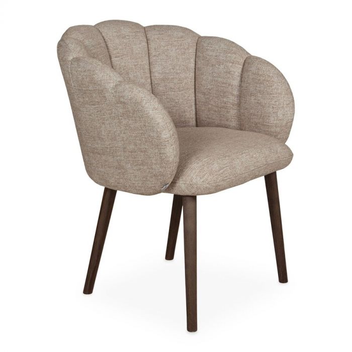 Met zijn opvallende ronde rug in een elegante schelpvorm vormt deze stoel niet alleen een functionele zitplaats, maar ook een kunstwerk dat de ruimte verfraait. De stof Awesom Naturel omhult de stoel, waardoor een natuurlijke en warme sfeer ontstaat. De zachte, subtiele tint van de stof straalt een tijdloze elegantie uit en nodigt uit tot gezelligheid. De ronde poten, taps toelopend in de kleur old grey, voegen een vleugje vintage charme toe aan het geheel. Jasper is leverbaar in diverse stof- en ledersoorten, waardoor je de vrijheid hebt om de perfecte bekleding te kiezen die past bij jouw persoonlijke smaak en interieur. Daarnaast zijn de pootkleuren aanpasbaar, waardoor je de stoel moeiteloos kunt afstemmen op de rest van je eetkamerinrichting.