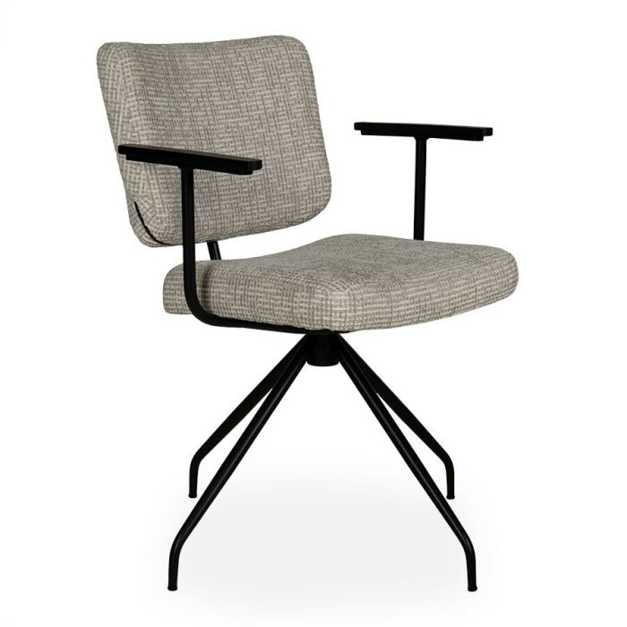 Met zijn stoffen bekleding Coco in de prachtige kleur Shell voegt deze stoel een vleugje natuurlijke warmte toe aan je interieur. De zwarte metalen draaipoot geeft de stoel een eigentijdse uitstraling en biedt tevens de mogelijkheid om gemakkelijk van positie te veranderen. De zwarte houten armleggers voegen een vleugje elegantie toe en zorgen voor extra comfort tijdens lange diners of gezellige gesprekken. Of je nu op zoek bent naar een stijlvolle stoffen bekleding of de luxe uitstraling van leer, Hemrock biedt een scala aan opties om aan je persoonlijke voorkeuren en interieurbehoeften te voldoen. Er is tevens de optie te kiezen voor vier rechte metalen poten en zonder armen. Het hebben van meerdere kleuropties voor de armleggers stelt je in staat om de stoel perfect af te stemmen op de rest van je eetkamerinrichting.