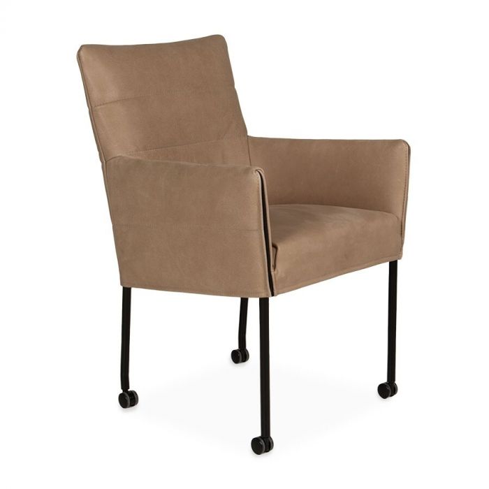 Gehuld in prachtig doorleefd leder Kenia in de warme en tijdloze kleur Taupe, straalt deze stoel een rustieke charme uit. Met zwarte poten die zijn voorzien van parketwielen, combineert de eetkamerstoel moeiteloos functionaliteit met esthetiek. De mobiliteit van de parketwielen zorgt voor een vloeiende beweging en maakt het eenvoudig om comfortabel aan tafel te schuiven. Voor heerlijk lang tafelen of werken bieden de armen extra ondersteuning of als je hulp nodig bent bij het opstaan of gaan zitten. Hope is leverbaar in diverse stoffen en ledersoorten. Liever geen wielen of een moderne skatewiel? Ook dat behoort tot de opties.