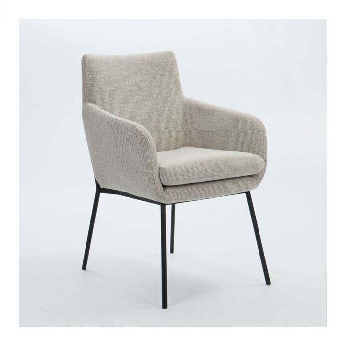 De bekleding in Ascot Pearl geeft de stoel een luxe uitstraling. De stof voelt zacht en aangenaam aan, waardoor je kunt genieten van een aangename zitervaring. Het subtiele kleurenpalet van Ascot Pearl voegt een vleugje ingetogen elegantie toe aan de stoel en past goed bij verschillende interieurstijlen. De toevoeging van een los kussen op de Zita eetkamerstoel zorgt niet alleen voor extra comfort, maar geeft ook een speels en decoratief element. Het ranke metalen frame is slank en verfijnd, waardoor het een moderne en eigentijdse uitstraling heeft. Dit model is inderdaad leverbaar in diverse stoffen en kleuren, waardoor je de vrijheid hebt om de stoel volledig aan jouw persoonlijke smaak en interieurvoorkeuren aan te passen.