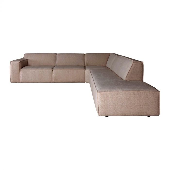 Elk element kan namelijk ook apart gebruikt worden, waardoor je met gemak verschillende opstellingen kunt creëren die perfect passen bij jouw interieur. Het model reikt tot aan de grond, wat zorgt voor een strakke en naadloze uitstraling. De grove biezen voegen een prachtig accent toe, wat de bank een extra vleugje klasse geeft. Bovendien is Eldorado verkrijgbaar in een breed scala aan stoffen, zodat je altijd de perfecte match kunt vinden voor jouw smaak en stijl. De getoonde stoffering in Venro, kleur Latte, is een voorbeeld van een superzachte, grove stof die zowel comfort als luxe uitstraalt. Onze opstelling bestaat uit de elementen 1,5-Zits arm links, 1,5-Zits zonder armen, Hoekelement trapeze, Ottomane I rechts.