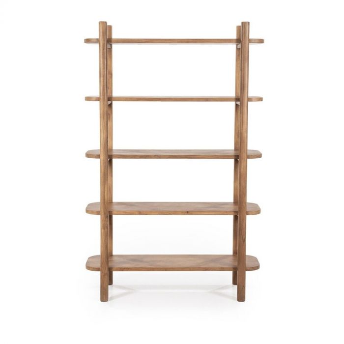De planken van de Julian wandkast worden omarmd door afgeronde hoeken, wat een zachte en organische uitstraling geeft aan het geheel. De ronde staanders dragen bij aan dit verfijnde design. Met zijn open ontwerp biedt de wandkast een podium voor jouw persoonlijke stijl en creativiteit. De ruime indeling van de planken maakt het eenvoudig om jouw favoriete voorwerpen op een georganiseerde en esthetisch aantrekkelijke manier te tonen. De warmte van het acaciahout voegt een natuurlijke touch toe aan de ruimte. De Julian serie bestaat uit een tv-meubel, dressoir, kabinet, wandkast, salontafel en eettafel.