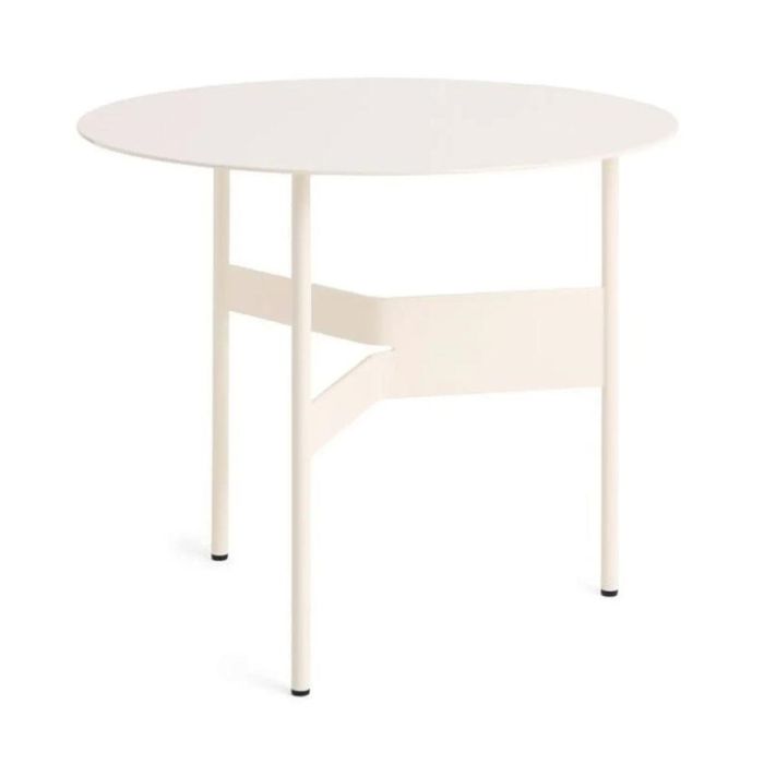 Shim is zo’n bijzettafel die meteen iets toevoegt aan je zithoek, zonder veel ruimte te vragen. Het ronde blad in gebroken wit brengt een subtiel statement, terwijl het slanke metalen onderstel luchtig oogt. Door de asymmetrische tussenplaat ontstaat er een speelse lijn in het ontwerp én een extra oppervlak om iets neer te leggen. Handig als je je bovenblad vrij wilt houden voor een glas, een koffiekop of een lampje. De tafel is volledig uitgevoerd in metaal met een matte poedercoating, waardoor hij stevig aanvoelt en makkelijk in onderhoud is. Zet hem naast een bouclés bank voor een zacht-contrast, bij een houten fauteuil voor extra diepte, of gebruik hem als compacte nachttafel. Shim past moeiteloos in een modern, Scandinavisch of net wat kleuriger interieur en laat zich ook leuk combineren met andere kleuren uit dezelfde serie.