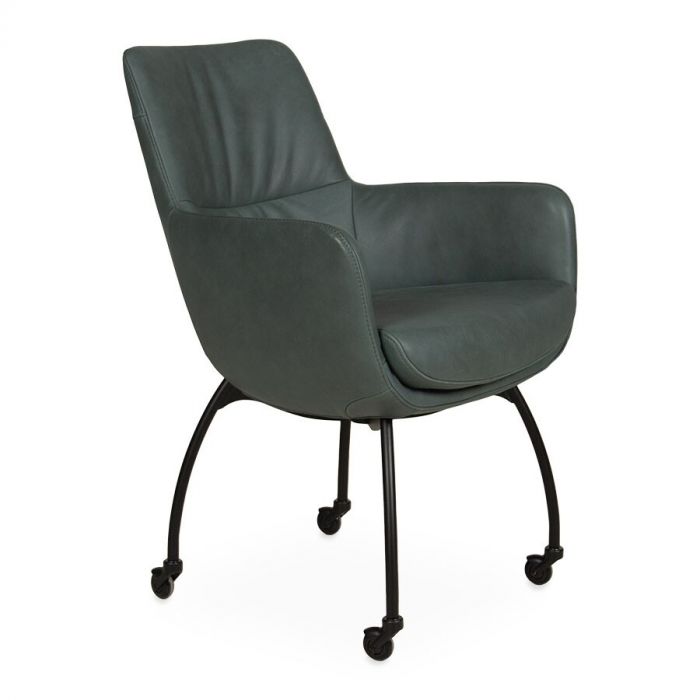 De armstoel Dutchz 2205 heeft prachtige ronde lijnen en een uitmuntend zitcomfort. De armstoel is uitgevoerd met luxe, zwarte skatewielen. Optioneel kun je ook kiezen om de eetkamerstoel met poot zonder wielen uit te laten voeren. Het soepele leer geeft de Dutchz 2205 een tijdloos en moderne uitstraling. Uiteraard is er een zeer ruime keuze in premium stof- en leersoorten beschikbaar.