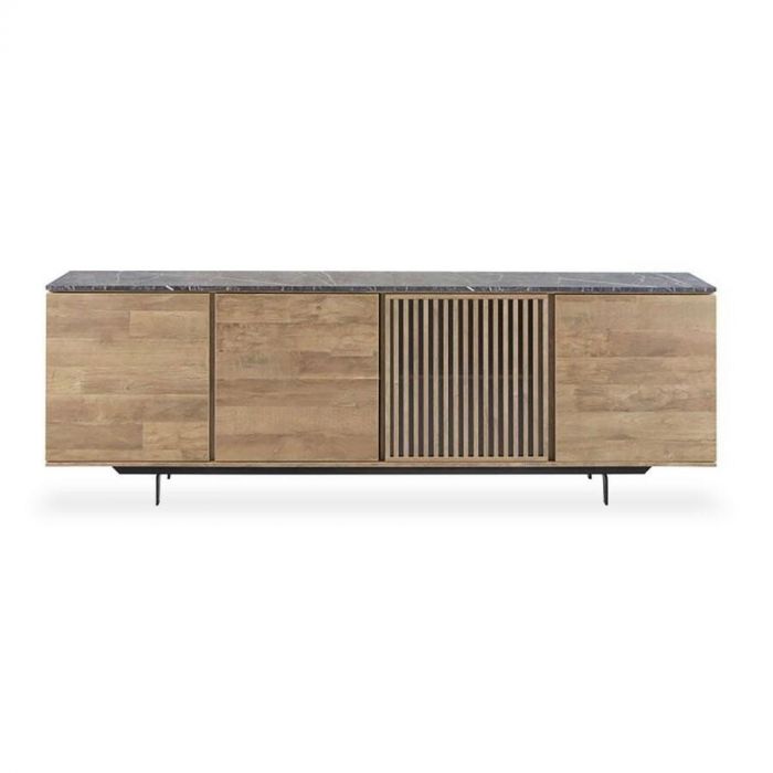 Het bovenblad van INHOUSE dressoir Sirione is vervaardigd van hoogwaardig HPL (High-Pressure Laminate) materiaal, dat de uitstraling heeft van echt marmer. Dit geeft een luxueuze en chique uitstraling, terwijl het tegelijkertijd duurzaam en gemakkelijk te onderhouden is. Het heeft alle schoonheid en verfijning van echt marmer, maar zonder het hoge prijskaartje en de kwetsbaarheid.