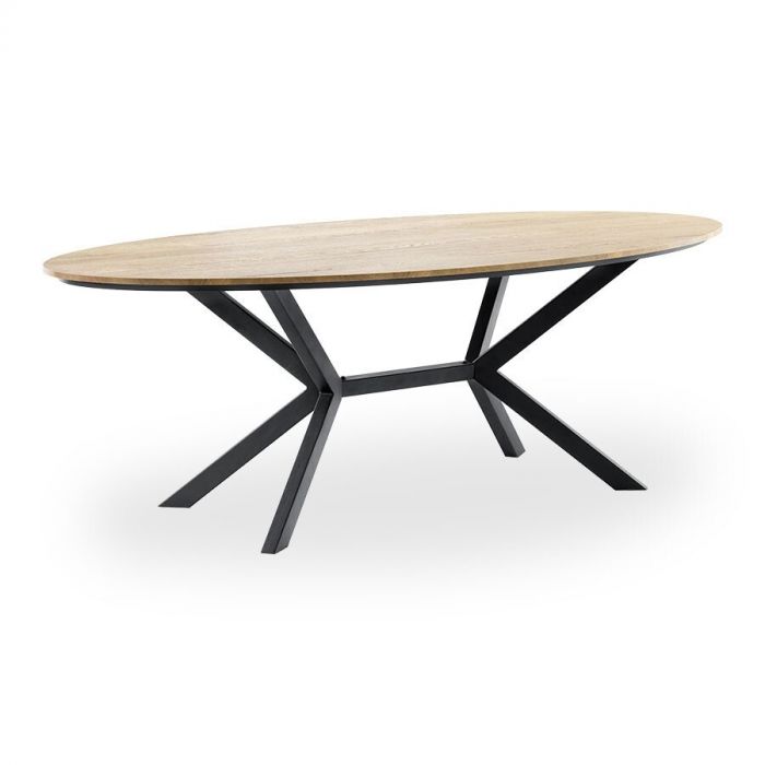 Larente van INHOUSE is een modern woonprogramma met een strakke uitstraling. De mooie combinatie van natur en old piano kleur met de zwarte metalen poten geeft de Larente een modern karakter. Dankzij de hoogwaardige Lamulux afwerking hebben de meubelen de uitstraling en het gevoel van echt hout, maar zijn ze zeer kras-, slijt- en stootvast en makkelijk in onderhoud. Deze ovale eettafel Larente is voorzien van een zwart metalen poot. De tafel wordt ongemonteerd geleverd, uiteraard met een duidelijk montagehandleiding.
