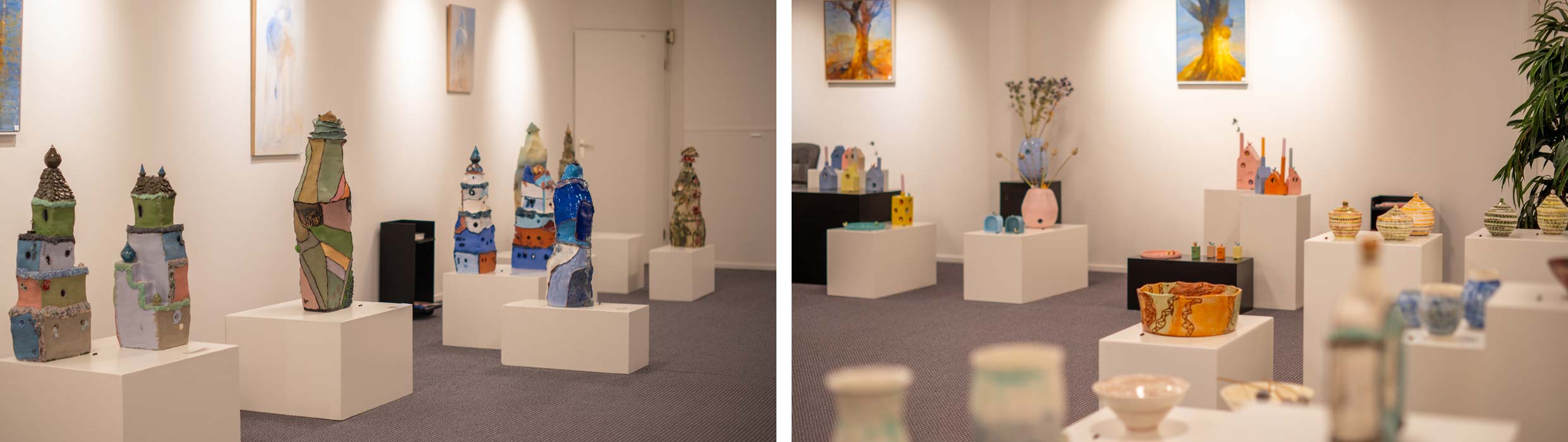 Op de eerste verdieping van Home Center is het werk van keramisten uit de kring van de Stichting Keramisten Noord Nederland te vinden. Ieder kwartaal wordt bij ons een nieuwe expositie ingericht waarbij diverse keramisten hun werk tonen. De diversiteit van het werk en de ruime opzet van de galerie maakt een bezoek zeer de moeite waard. Het is een rustpunt in Home Center dat het gehele jaar doorloopt. Naast keramiek zijn er ook regelmatig schilderijen of foto's te bewonderen.