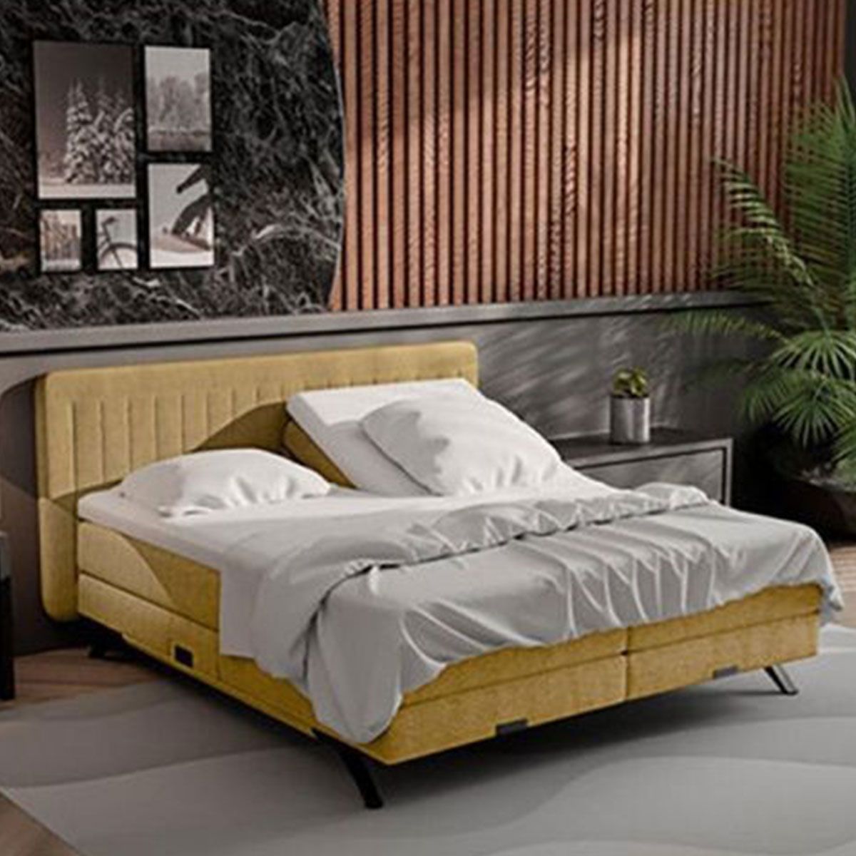 De Key West Boxspringset V1900 Brass combineert luxe slaapcomfort met een stijlvol Scandinavisch design. Het strakke lijnenspel en de slanke poten geven de boxspring een moderne en elegante uitstraling die perfect past in een eigentijdse slaapkamer. De set is bekleed met hoogwaardige Mito-stof, die bekendstaat om zijn zachte, luxueuze gevoel en duurzame kwaliteit. Dankzij de slijtvaste en onderhoudsvriendelijke stof blijft de boxspring jarenlang mooi. De V1900 Brass is verkrijgbaar in verschillende kleuren, zodat je eenvoudig een uitvoering kiest die aansluit bij jouw persoonlijke interieurstijl.