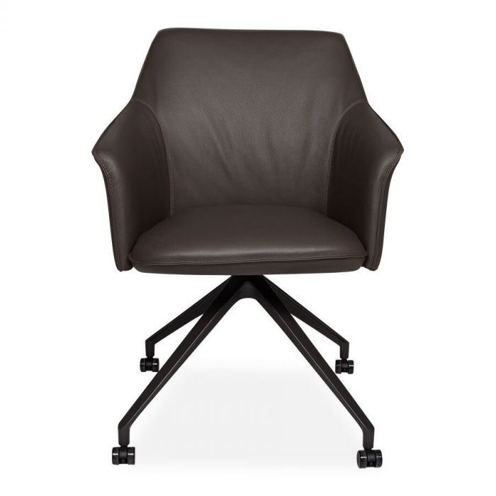 Eetkamerstoel Mara Twist is een strak leren stoel, uitgevoerd met wieltjes voor een makkelijke verplaatsing van en naar de eettafel toe. De rondingen in de zit van deze stoel en de verfijnde afwerking kenmerkt het design van Christian Werner, één van de ontwerpers van Leolux. Mara is leverbaar in diverse leer- en stofsoorten en met vier verschillende onderstellen. Daardoor is het mogelijk je eigen favoriete ontwerp te creëeren.