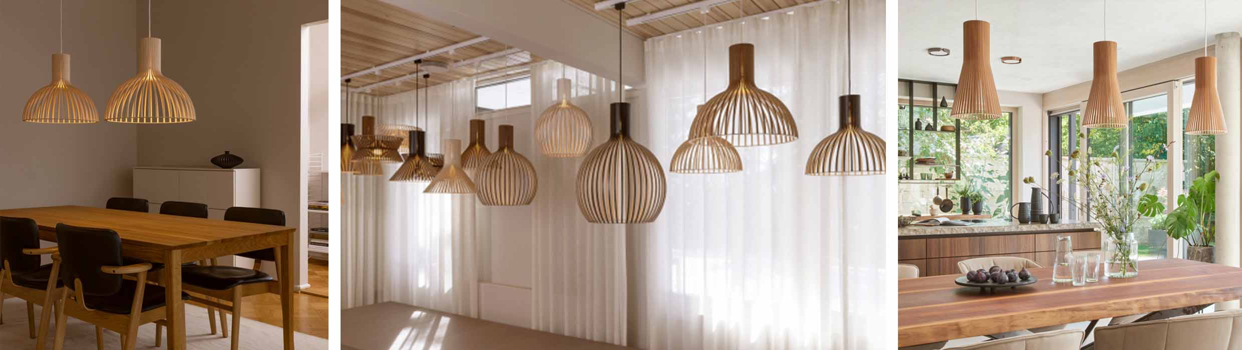 Het unieke ontwerp van de Secto lampen zit in het design van de verschillende lampenkappen; deze zijn gemaakt van lichte berkenhouten latjes die zijn verlijmd tot hun kenmerkende vormen. Deze houten design lampen passen goed bij een Scandinavisch interieur. Bij het ontwerpen van de lampenkappen is rekening gehouden met een harmonieuze verspreiding van het licht in je woonkamer. Het licht zal je niet verblinden. Door de minimalistische vormgeving van de unieke houten lampenkap zal het warme licht een fascinerend patroon maken op de wanden en vloeren van je kamer.