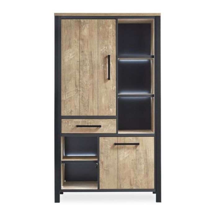 Ook het slanke zwart metalen frame geeft de barkast Mendiga een stoere maar toch ook strakke look. Verder bevat de barkast twee deuren, één lade en vijf open vakken en achter de deur vind je twee legplanken. Accessoires en boeken kan je handig opbergen en leuke spullen kun je een mooi plekje in het zicht geven. Mocht je meerdere meubels nodig hebben dan zou je een kijkje kunnen nemen uit de serie Mendiga.