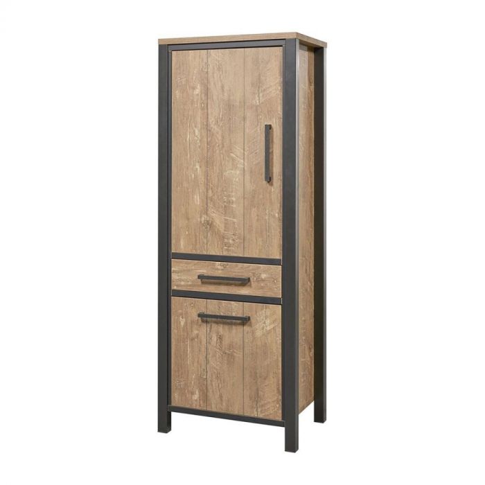 Deze kast is voorzien van twee linksdraaiende deuren en één lade. Achter de bovenste deur vind je 2 legplanken, achter de onderste deur 1 legplank. Zo biedt Mendiga volop ruimte om boeken, servies of andere spullen netjes op te bergen. Dankzij de ingebouwde verlichting wordt de inhoud mooi uitgelicht en krijgt de kast extra sfeer.