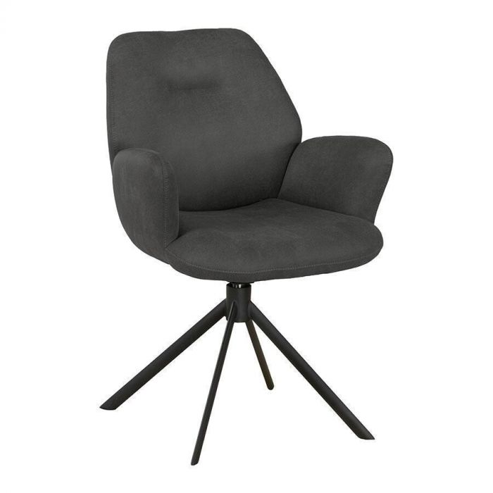 Armstoel Loranzo van Pronto Wonen is uitgevoerd met een zachte microvezelstof in een stijlvolle donkergrijze tint. De stof voelt comfortabel aan, is slijtvast en makkelijk te onderhouden. Een subtiel sierstiksel in de rugleuning en de zwarte metalen draaipoot geven de stoel een moderne, elegante uitstraling. Dankzij de volledig gestoffeerde afwerking past Loranzo perfect in elk interieur. De comfortabel gevormde kuip biedt fijne ondersteuning, terwijl de vaste kussens in rug en zitting zorgen voor een ontspannen zitervaring. Dankzij de 360 graden draaifunctie stap je moeiteloos in en uit de stoel.