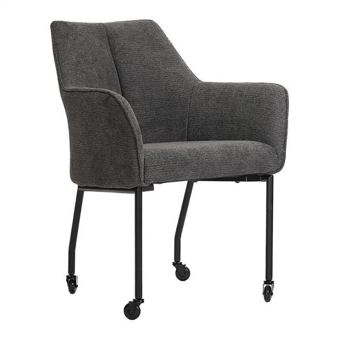 De eetkamerstoel Dura van Pronto Wonen combineert stijl en gebruiksgemak en is een prachtige toevoeging aan jouw interieur. De subtiele verticale naad in de rugleuning en de bekleding in de robuuste stof Mito geven de stoel een moderne en tijdloze uitstraling. De stof heeft een subtiel grove structuur die zacht aanvoelt, ideaal voor dagelijks gebruik en perfect om je eetkamer een eigentijdse touch te geven. De zitting is voorzien van stevig polyetherschuim dat comfortabele ondersteuning biedt, terwijl de zwarte poten met skatewielen zorgen voor extra gemak. Je glijdt soepel naar de juiste plek aan tafel, zonder het gedoe van zware stoelen verschuiven. Met een breedte van 61 cm en een maximale belasting van 120 kg is de Dura een praktische en stijlvolle keuze voor elke eetkamertafel.