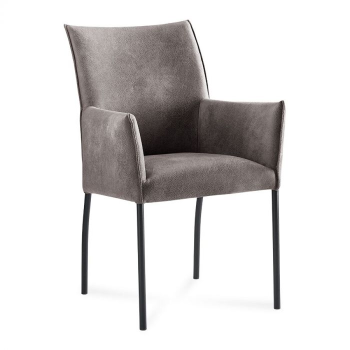 Deze eetkamerstoel van Pronto Wonen is uitgevoerd in donkergrijs microleder. Microleder is een samengestelde bekleding met een stevige onderlaag van leer en een toplaag van microvezelstof. Dit geeft een mooie, wat stoere look, en voelt desondanks lekker zacht aan. Bovendien is microleder makkelijk in het onderhoud. De stoel is standaard voorzien van een gesloten vlindernaad, dit accentueert de belijning van de eetkamerstoel. Op de achterzijde van de rugleuning zit een ritssluiting in dezelfde kleur als de stof. De zitting is voorzien van een combinatie van comfortschuim en HR-schuim, dit zorgt voor een wat steviger zitcomfort. HR-schuim heeft een hoog herstellend vermogen en een hoge veerkracht. Hierdoor behoudt de zitting langdurig zijn vorm en comfort. De rug is voorzien van comfortschuim, dit geeft een goede ondersteuning van de rug.