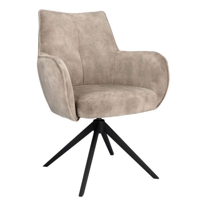 De Pronto Wonen eetkamerstoel Dordona is een comfortabele armstoel die perfect past in een moderne eetkamer. De stoel is bekleed met een zachte velvetstof. Deze stof voelt fluweelzacht aan en is tegelijkertijd slijtvast en eenvoudig te onderhouden, waardoor de stoel zowel praktisch als sfeervol is. De Dordona heeft een prettig gevormde kuip met vaste kussens in de rug en zitting voor extra zitcomfort, ideaal voor lange diners of gezellige avonden aan tafel. De afgeronde armleuningen zorgen voor een ontspannen zithouding, terwijl de zwarte metalen draaipoot met autoreturnfunctie de stoel een eigentijdse uitstraling geeft.