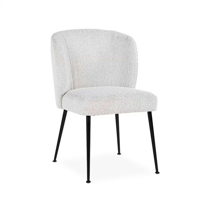 Deze prachtige stoel heeft een witte boucléstof bekleding die zacht en aaibaar aanvoelt. De ranke zwart metalen poten geven de stoel een modern en eigentijds karakter. De stoel is niet alleen mooi om naar te kijken, maar biedt ook comfort tijdens het dineren. Dankzij de zachte stof en de perfecte pasvorm van de stoel, zit je tijdens het eten comfortabel en ontspannen. Dit zorgt ervoor dat je langer aan tafel wilt blijven zitten en nog meer van het diner kunt genieten. Fallon is tevens te verkrijgen in de stoffen Thyme Fusion en Shitake Island.