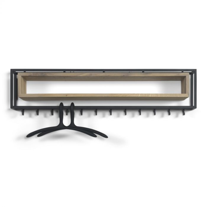 Spinder Design School kapstok is stijlvol en minimalistisch en past perfect in ieder interieur. De kapstok is uitgevoerd in een zwart gepoedercoat stalen frame. De bak bestaat uit massief eikenhout. De School kapstok is gemakkelijk met twee schroeven aan de muur te bevestigen. De kapstok School is tevens verkrijgbaar in een kleinere afmeting.