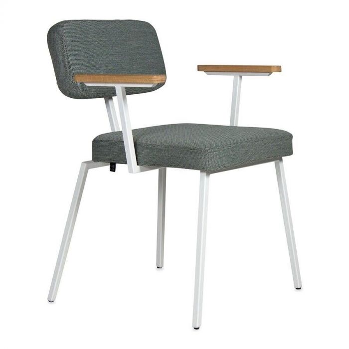 Armstoel Ode is uitgevoerd in stof Steelcut Trio met een frame van gepoedercoat wit metaal en armleggers in Hardwax Olie, in de kleur 3041-Naturel Light. Eetkamerstoel Ode is verkrijgbaar in verschillende stoffen of in leer. Het frame van de stoel is van metaal met een matte coating in wit of zwart. De stoel is verkrijgbaar met of zonder armleuningen. De armliggers zijn van hout en zijn in vier kleuren verkrijgbaar.