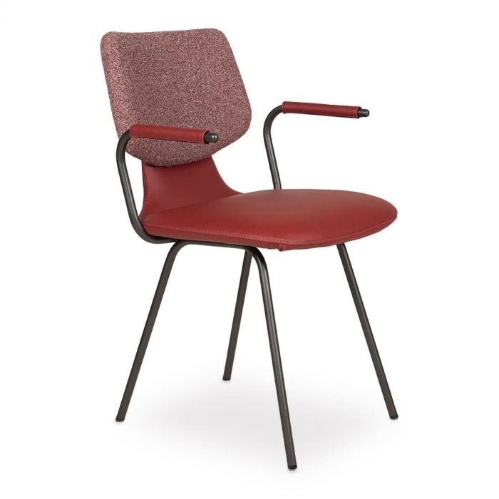 Met de Rosa eetkamerstoel heb je de keuze tussen een versie met of zonder armleuning. Als je kiest voor de variant met armleuning, kun je kiezen tussen gestoffeerde of ongestoffeerde armleuningen. Bovendien kunnen zowel de Rosa eetkamerstoelen met als zonder armleuning moeiteloos met elkaar gecombineerd worden. De stoel is verkrijgbaar in diverse kleuren leder en stof, waardoor je de zitting en de rug in verschillende kleuren en materialen kunt laten uitvoeren. Daarnaast heb je de mogelijkheid om uit vijf verschillende kleuren onderstellen te kiezen. Met een schijnbaar oneindige combinatie van opties, biedt de Rosa eetkamerstoel talloze mogelijkheden om je eigen unieke stijl te creëren. De getoonde uitvoering heeft een rug in de stof Society Scarlet en een zitting in Leder Azalee, gecombineerd met een metalen frame in TM100 antraciet.