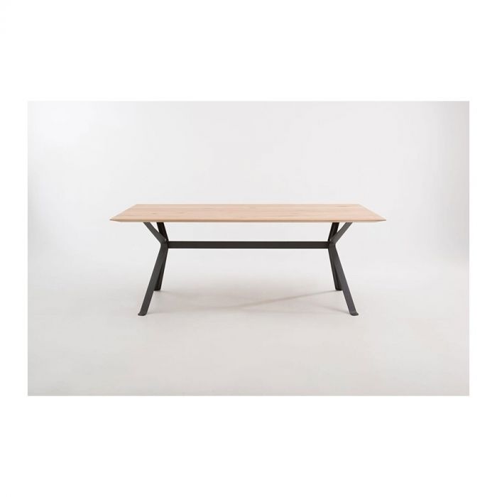 De getoonde uitvoering in voorzien van een eikenhouten tafelblad in bootsvorm in de afwerking rustiek bianco olie. De verjongde randafwerking houdt het ontwerp slank en luchtig. Met zijn veelzijdigheid is hij verkrijgbaar in maar liefst zes verschillende bladvormen, met keuze uit hout, dekton en HPL. De beschikbare formaten zijn 180 / 200 / 220 en 240 cm. Bovendien biedt hij keuze uit dertien onderstellen in vijf verschillende kleuren, waardoor je de mogelijkheid hebt om een unieke stijl te creëren die past bij jouw persoonlijke voorkeuren en interieur.