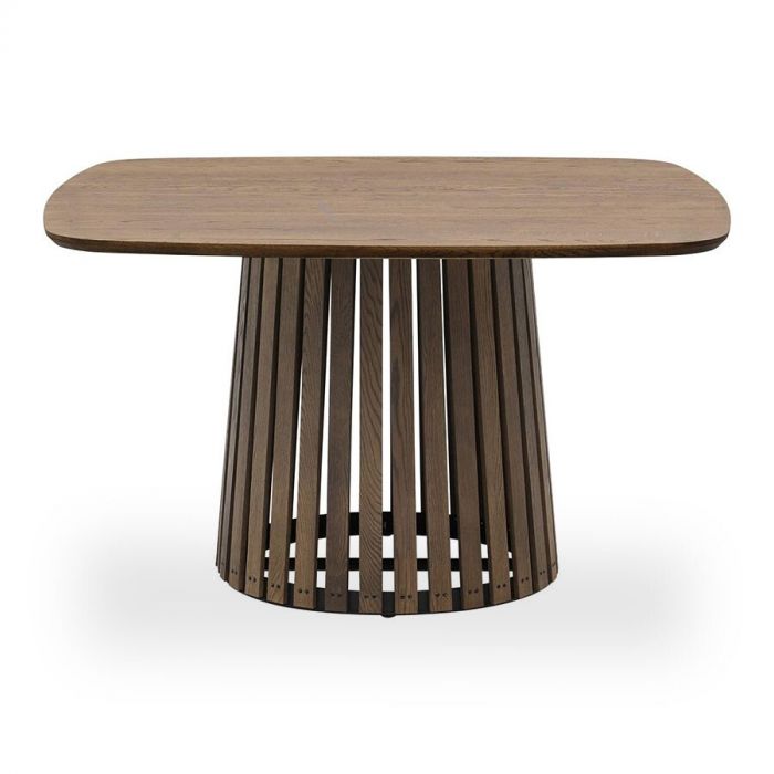 Met zijn vierkante blad en zachte, ronde hoeken straalt deze tafel een gevoel van warmte en gezelligheid uit. De elegante kleur Deer Brown past naadloos in verschillende interieurstijlen, van modern tot landelijk. Deze warme bruine tint voegt een natuurlijk element toe aan je eetruimte en creëert een uitnodigende sfeer. Wat de tafel echt speciaal maakt, is zijn tapse kolompoot, bestaande uit verticale latjes. Deze unieke basis geeft de tafel een speelse uitstraling. Bovendien biedt het ontwerp voldoende beenruimte, zodat je comfortabel aan de tafel kunt zitten. Deze trendy tafel is in de basis al bijzonder en maak je waanzinnig met jouw stijlkeuzes. Je kiest namelijk zelf de afmeting, de afwerking en de kleur van het blad. Bovendien kies je ook nog jouw favoriete poot uit de diverse aangeboden poten.