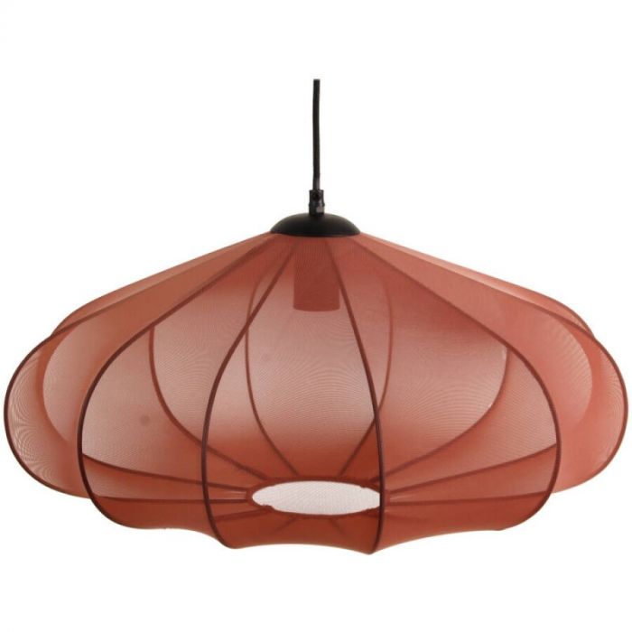 De lampenkap is gemaakt van een doorzichtige superfijne netstof, die zorgvuldig is gespannen over een metalen frame. Het resultaat is een fascinerende combinatie van lichtheid en robuustheid, waarbij het licht op een betoverende manier door de stof speelt en een warme gloed creëert in elke ruimte waarin hij hangt. De kleur Light Iron Terra voegt een vleugje aardse elegantie toe aan je interieur, waardoor een harmonieuze sfeer ontstaat. Naast de kleur Terra is dit model tevens te verkrijgen in Light Beige en Zwart.
