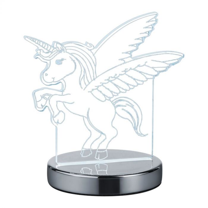 De Trio Karo tafellamp is een LED-verlichting met drie kleurwarmtes in de vorm van een eenhoorn. Erg decoratief voor op een nachtkastje of dressoir in de kinderkamer.