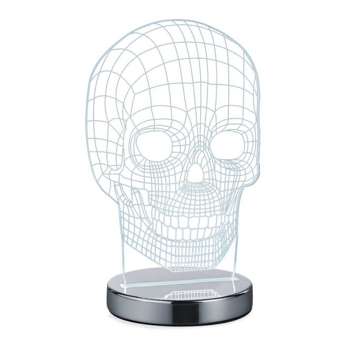 De Trio Skull tafellamp is een LED-verlichting met drie kleurwarmtes in de vorm van een schedel. Erg decoratief voor op een nachtkastje of een dressoir.