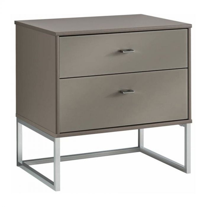 De getoonde uitvoering is voorzien van de kleur Champagne, gecombineerd met een chromen onderstel. De twee lades bieden voldoende opbergruimte voor al je nachtelijke benodigdheden, terwijl het chromen onderstel een subtiel contrast biedt en een gevoel van luchtigheid creëert. Ontdek de veelzijdigheid van de nachtkastjes onder de Vigo-serie, waarbij elk stuk zich onderscheidt in formaat, kleur en uitvoering. Standaard bieden we een nachtkastje met twee lades aan, maar voor extra opbergruimte zijn er ook opties met drie, vier of zelfs vijf lades beschikbaar. Verken onze collectie voor meer mogelijkheden die bij jouw behoeften passen.
