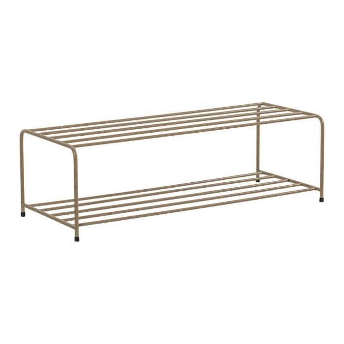 Praktisch en stijlvol: schoenenrek Josse van WOOOD. Metaal in elegante mudkleur, geschikt voor elke hal. Compact ontwerp met twee lagen.