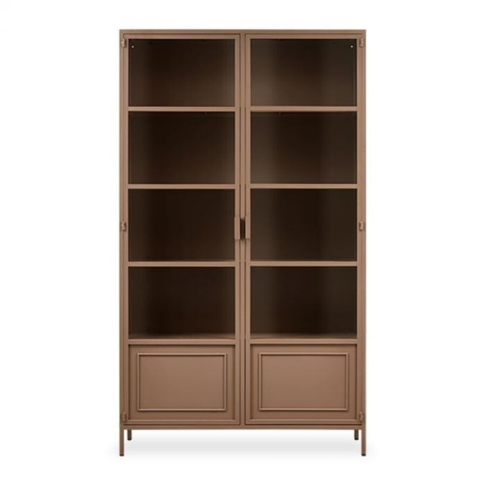 Wat een plaatje, deze stoere Ronja vitrinekast XL van het merk WOOOD. Deze vitrinekast gemaakt van militairy brown metaal heeft een vintage uitstraling en geeft je interieur een echte boost! Heel fijn is dat je achter de deurtjes onderin de kast je troep kunt opruimen, terwijl je achter de glazen deur genoeg ruimte hebt om juist je mooiste accessoires tentoon te stellen. Je kunt er natuurlijk ook je servies en glazen in zetten.
