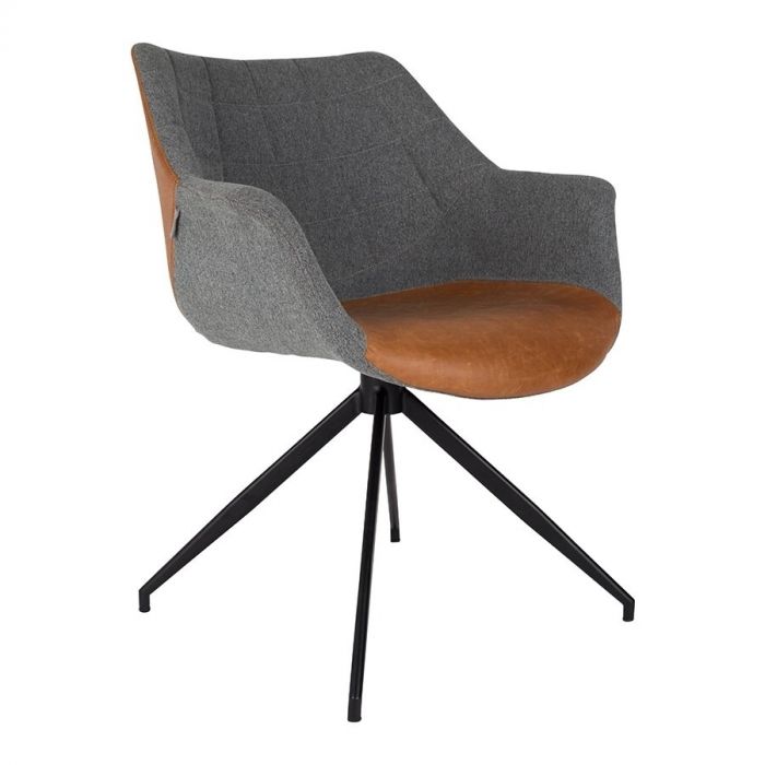 Vintage bruin gecombineerd met grijs geven eetkamerstoel Doulton een unieke look. Waar schuif jij deze stoel aan?
