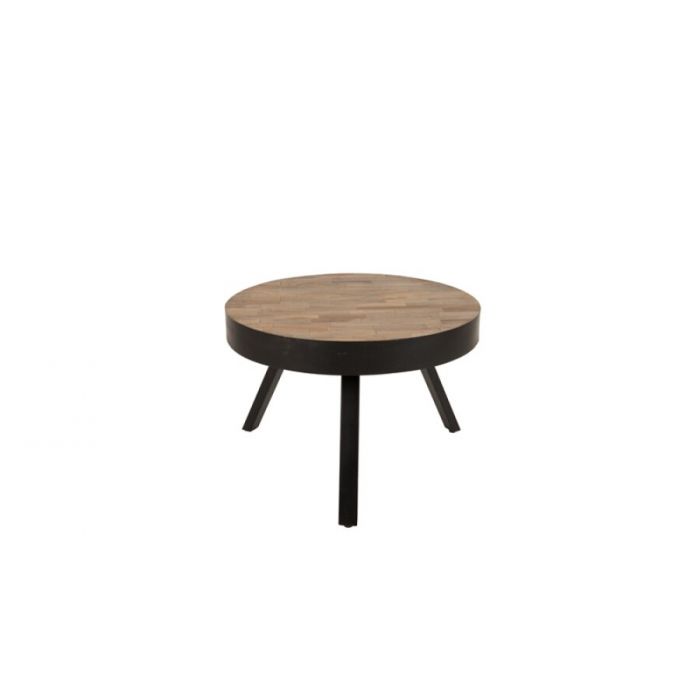De Suri salontafel van Zuiver is een praktische en moderne salontafel. Met een hoogte van 40 cm en een diameter van 58 cm heeft de tafel niet veel ruimte nodig. Dit is het medium exemplaar, eventueel is er nog een large exemplaar verkrijgbaar. De tafel is gemaakt van teakhout en de rand en de poten van de tafel zijn van zwart staal.